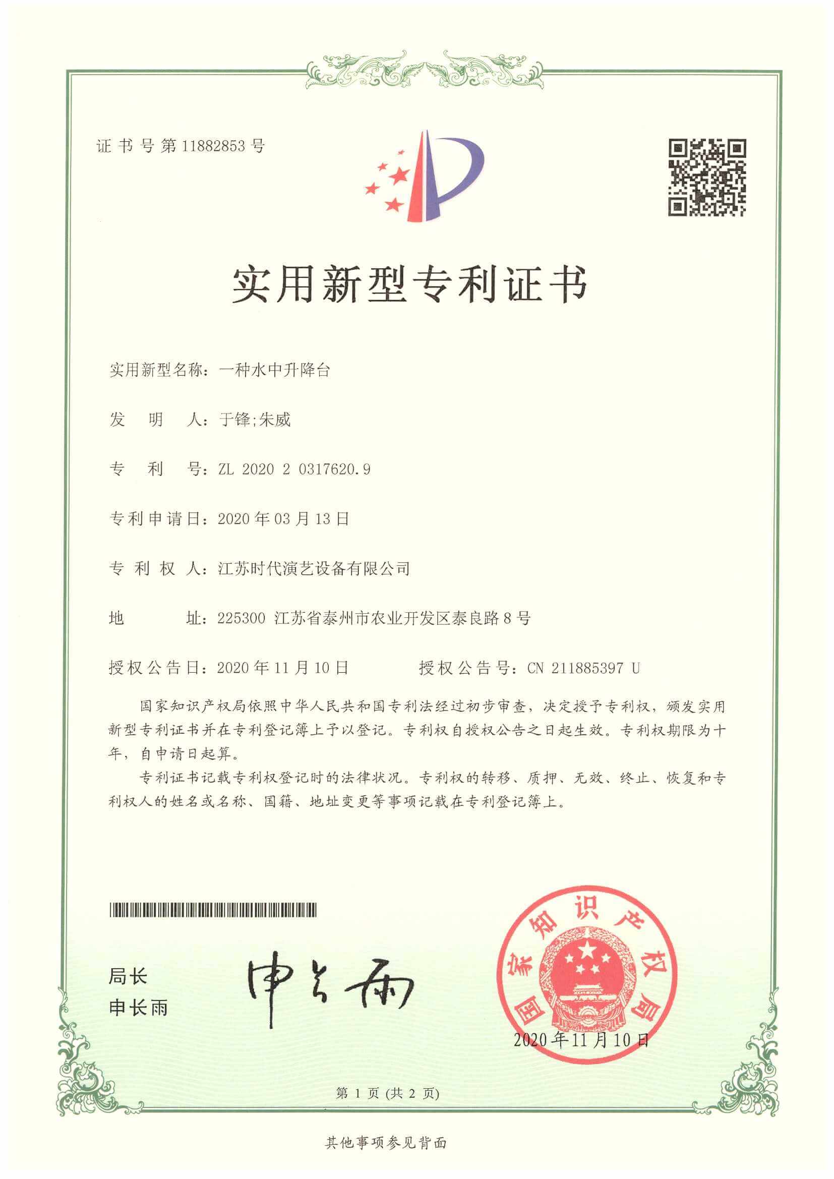 實(shí)用新型-一種水中升降臺(tái)