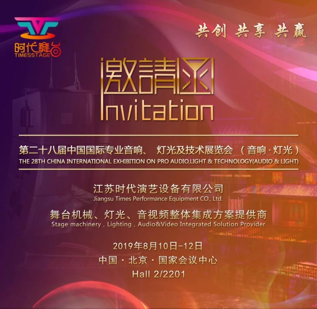 展會(huì)期間,舞臺(tái)機(jī)械高峰論壇將于第一天8月10日上午9:30在國(guó)家會(huì)議中心4號(hào)館內(nèi)會(huì)議區(qū)同期舉行。9:30時(shí),江蘇時(shí)代舞臺(tái)總經(jīng)理于鋒,將作為第一位演講嘉賓,就《德國(guó)意大利劇場(chǎng)舞臺(tái)技術(shù)考察與思考》、《劇院建設(shè)中舞臺(tái)工藝的實(shí)際應(yīng)用》兩個(gè)主題作專題演講和分享,邀請(qǐng)您屆時(shí)蒞臨論壇現(xiàn)場(chǎng),共同參與溝通討論。 2019 PALM 江蘇時(shí)代舞臺(tái)展位效果圖本次展會(huì)江蘇時(shí)代舞臺(tái)將攜新型卷?yè)P(yáng)機(jī)、新型舞臺(tái)機(jī)械控制臺(tái)等展品亮相展示。江蘇時(shí)代演藝設(shè)備有限公司(以下簡(jiǎn)稱“江蘇時(shí)代”)總部基地位于梅蘭芳故鄉(xiāng)——江蘇泰州,擁有30多年舞臺(tái)設(shè)備設(shè)計(jì)和制造歷史,配置有4萬(wàn)...